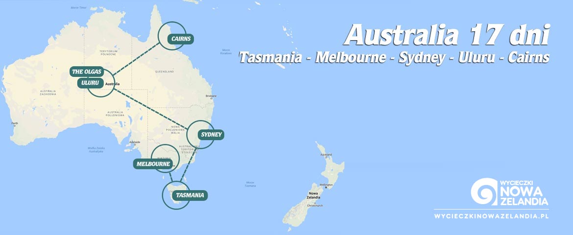 Wschodnie wybrzeże Australii w całej okazałości od Cairns i Wielkiej Rafy Koralowej przez Sydney po Melbourne i Great Ocean Road. Odwiedziny przy świetej górze Aborygenów i skok na Tasmanię. Zakwaterowanie w hotelach i motelach o standardzie do wyboru: 3 i 4